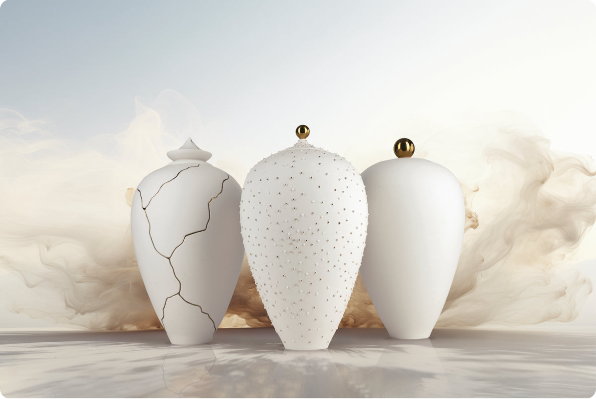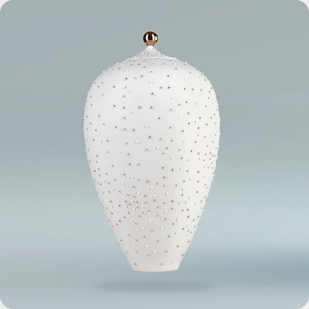 Hyle's exquisite and unique cremation urns are handcrafted, making each urn one of a kind. Every piece is ethically and single-handedly made by skilled artisan. Hyle luxury cremation urns are crafted from world-class Limoges porcelain and 24K gold, to reflect and celebrate our memories and cherish the life of our loved ones.